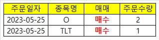 이번 달은 정말 매매가 적은 달이였습니다. AI를 기반으로 기술주가 태동을 하기 시작하면서 굳이 기술주를 지금 매집을 하지 않았고 관망을 하고 있었습니다. AI테마가 빠르게 반등하기에 기술주는 매력도가 많이 떨어졌고, 저에게 있어 매력적으로 다가온 주식은 역시 채권과 배당주였습니다. 5월에 미국 정부의 부채한도협상이 시장에 불안감으로 인해 채권금리가 흔들리고, 금리가 흔들리니 배당주 또한 흔들리는 모습을 보여줬습니다. 그러한 이유에서 $60 선이 무너진 리얼티인컴과 $100에 가까워지고 있는 채권을 조금씩 추가 매수했습니다.